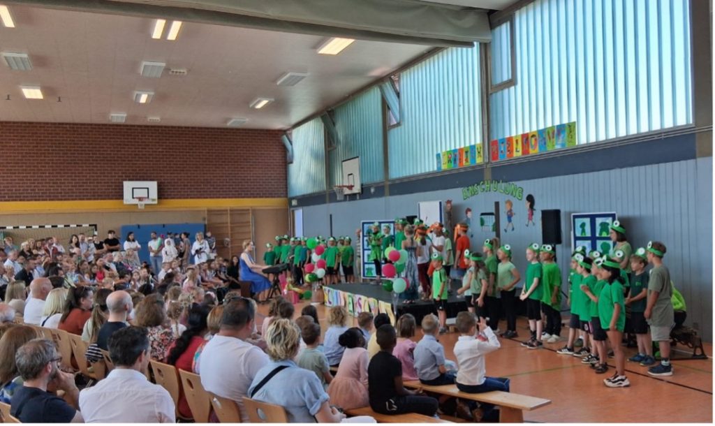 Bensheim. Mit großer Vorfreude und strahlenden Gesichtern wurden am Dienstagmorgen insgesamt 74 neue Erstklässlerinnen und Erstklässler feierlich in der Schillerschule begrüßt. Die Einschulungsfeier fand bei bestem Sommerwetter in der bunt geschmückten sehr gut besuchten Sporthalle statt – ein besonderer Moment für die Kinder und ihre Familien.